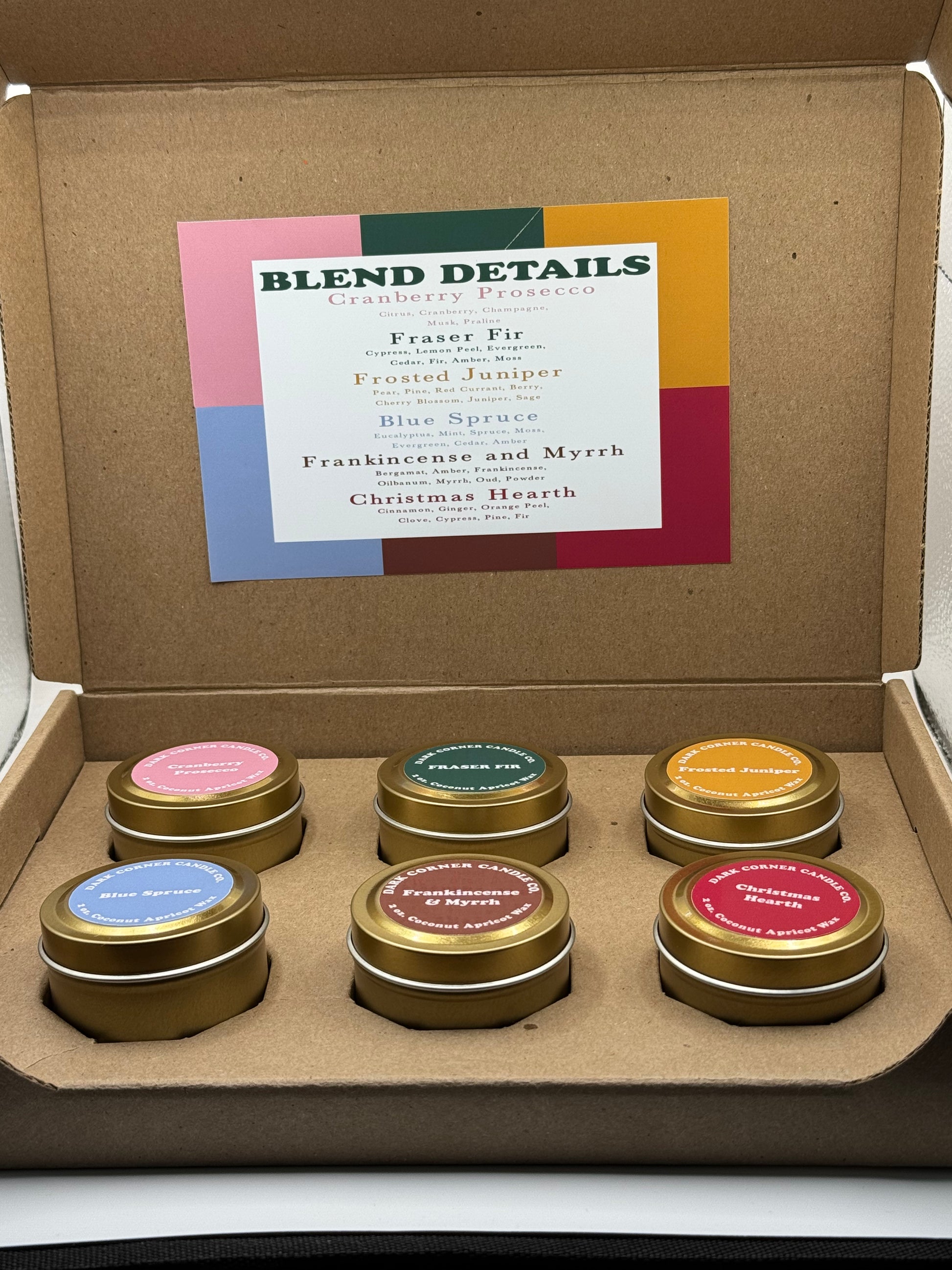 Enrich the atmosphere of any space with our Christmas series mini candle gift box- a collection of six beautifully crafted 2oz. candles that bring warmth, serenity, and timeless elegance to the home.